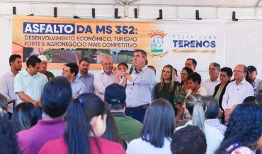 Saul Schramm/Secom Ponte do Grego: Governo entrega obra na MS-352 para impulsionar turismo e alavancar economia da região A pavimentação da MS-352 muda a rotina de Terenos e entorno: melhora o escoamento de grãos, dá segurança e rapidez ao transporte escolar e facilita o acesso de turi...