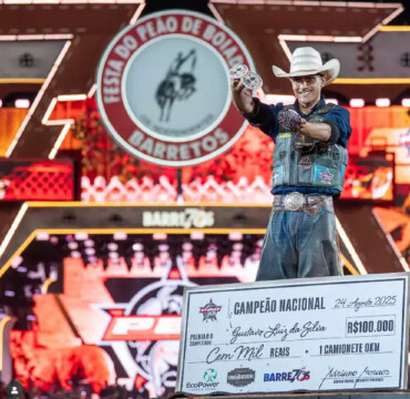 Considerado a mais nova sensação das montarias em touro do país, o peão Gustavo Luiz Silva, de Inocência (MS), conquistou na noite anterior a etapa final de Barretos (SP) válida pela PBR Brasil 2025. Antes do início das quatro noites de prova, o jovem de apenas 19 anos chegou à arena do maio...