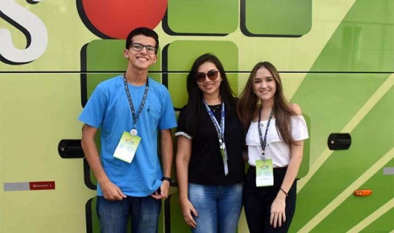 Paulo, Kianny e a professora Marcelly Tavares, que acompanha os alunos de Corumbá na Feira da USP