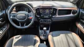 No topo estão as versões Ranch e Ultra, ambas com o motor Turbo 200 Flex. A Ranch, que avaliei, combina diferenciais visuais, como grade dianteira redesenhada e novos faróis de neblina em LED, além de bancos em couro e novos painéis de porta. Já a Ultra se destaca por uma proposta mais esportiva, com detalhes exclusivos como friso vermelho na grade e nome da versão bordado nos bancos.