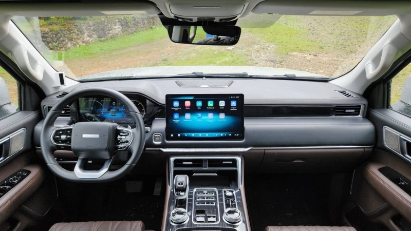 O trajeto do test-drive foi estruturado de modo a expor a Tunland V7 a diferentes situações. No primeiro trecho, enfrentamos o trânsito da capital paulista, onde pude observar o funcionamento da central multimídia de 14,6 polegadas e do painel digital de 12,3 polegadas. A conectividade com Apple CarPlay e a possibilidade de carregamento por indução do celular mostraram como a picape está equipada para o uso diário em centros urbanos. O conforto interno, apoiado em bancos com ajustes elétricos e acabamento premium, tornou o tempo no tráfego mais funcional.