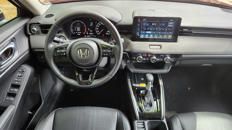 O sistema de assistência à condução Honda Sensing atuou de forma discreta, oferecendo alertas de manutenção de faixa e correção de trajetória quando necessário. O controle de cruzeiro adaptativo manteve distância segura em relação aos veículos à frente, principalmente em trechos de serra com tráfego variável. O freio de estacionamento eletrônico e o assistente de partida em rampas garantiram praticidade nas paradas e retomadas.