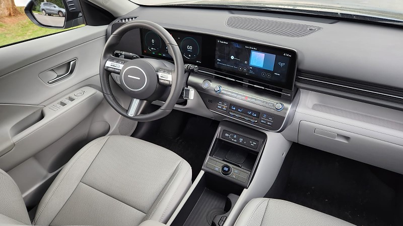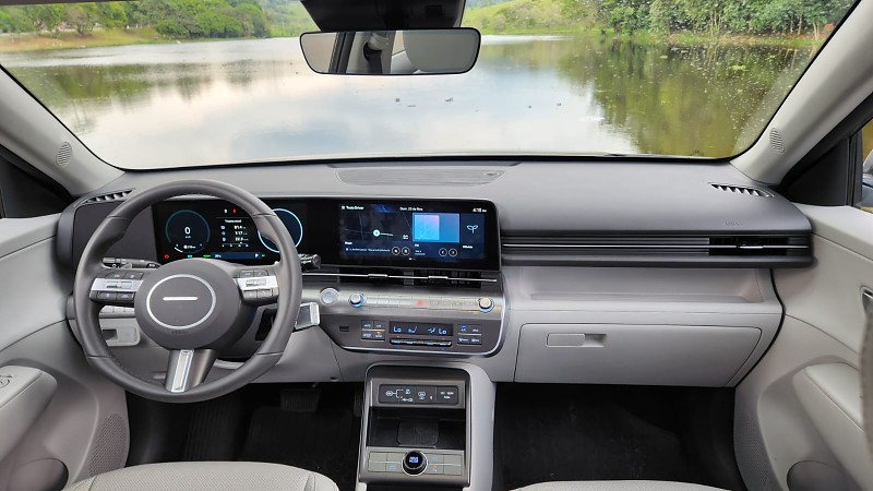 A ergonomia do interior merece destaque pela organização dos comandos e pela integração das telas. As duas superfícies de 12,3 polegadas formam um conjunto visual contínuo que facilita a leitura de informações e o acesso aos modos de condução, dados de fluxo de energia e gráficos de eficiência. O câmbio Shift-by-Wire posicionado na coluna de direção libera espaço no console e melhora a circulação de objetos e dispositivos. Os bancos dianteiros oferecem regulagem elétrica na versão Signature e colaboram para ajustar rapidamente a posição ideal de condução no espaço urbano.