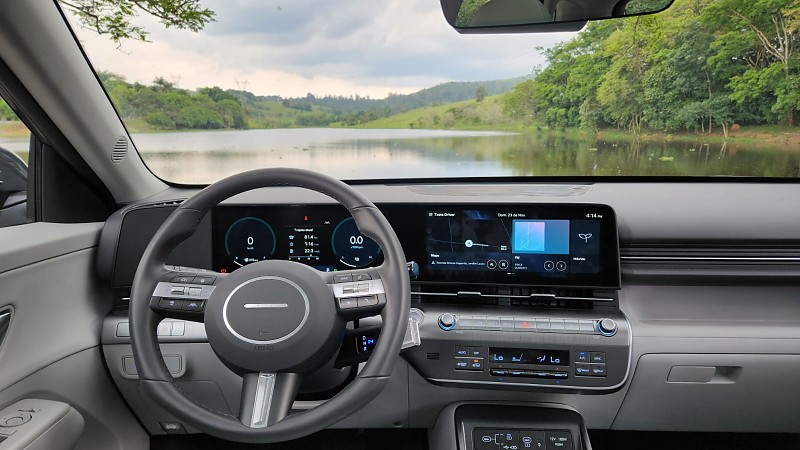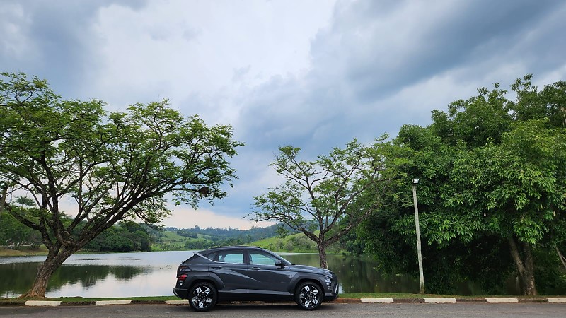 Ainda na cidade, o KONA chamou atenção de pedestres, passageiros e demais motoristas. Em semáforos e estacionamentos, a faixa luminosa frontal e o desenho traseiro provocaram curiosidade, com perguntas recorrentes sobre a motorização e a autonomia. Essa reação espontânea demonstra que a linguagem visual da Hyundai alcançou o objetivo de diferenciar o modelo entre os eletrificados, criando identidade própria dentro do trânsito urbano.