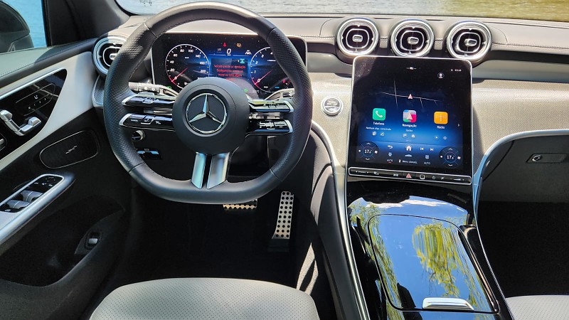 O GLC 300 4MATIC AMG Line 2026 utiliza o motor quatro cilindros de 258 cavalos, associado à tecnologia híbrida leve de 48V e ao gerador de partida integrado. O conjunto atua com o câmbio automático 9G-TRONIC e tração integral 4MATIC. A cabine traz o sistema MBUX de nova geração, com telas de 12,3 e 11,9 polegadas, integração sem fio, assistente de voz, navegação completa e funcionalidade de serviços digitais.