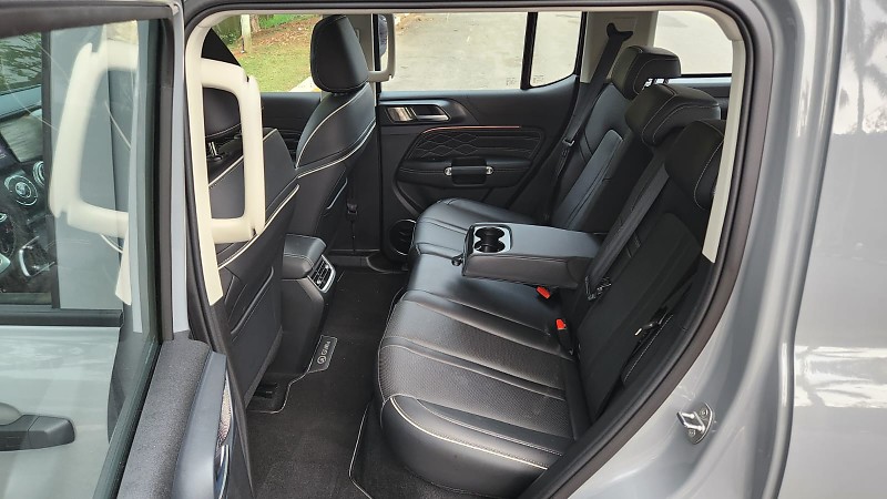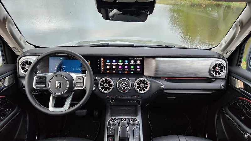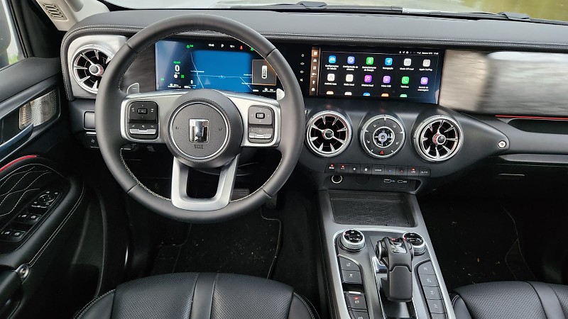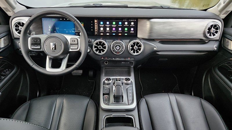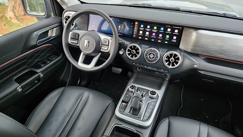 O interior apresenta layout funcional e de fácil adaptação. As duas telas de 12,3 polegadas exibem informações do painel e do sistema multimídia, com interface em português e conexão sem fio para Apple CarPlay e Android Auto. A integração com o aplicativo My GWM permite monitoramento remoto de funções como travamento, climatização e nível de carga da bateria. O sistema de áudio de 640 W oferece clareza nas transmissões, e os bancos dianteiros possuem aquecimento, ventilação e massagem. São itens que reforçam o caráter tecnológico do modelo, sem comprometer a usabilidade.