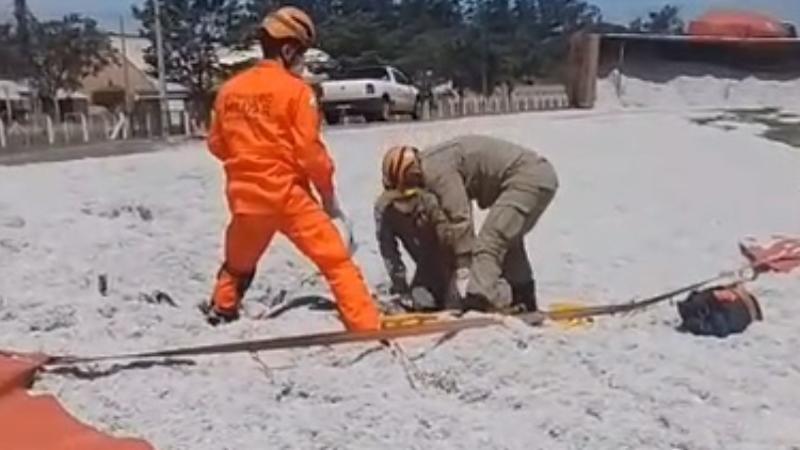Populares acionam bombeiros após perceberem que vítima gritava sob a carga