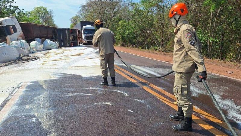 Equipes do Corpo de Bombeiros Militar de Mato Grosso do Sul (CBMMS) também estiveram no local. O trecho precisou ser interditado temporariamente para a retirada do caminhão e da carga, que transportava 32 toneladas de borato. A pista já foi liberada para o tráfego normal.