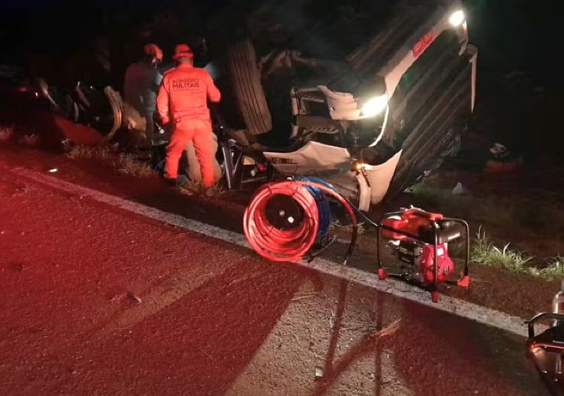 O acidente aconteceu na madrugada deste domingo (2), em um trecho entre as cidades de Inocência e Paranaíba, no Mato Grosso do Sul. As causas do capotamento ainda serão investigadas pela Polícia Civil.
