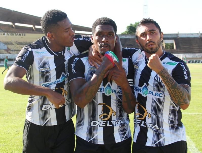Jonatas Obina (centro) marcou os três primeiros gols da goleada do Operário no Morenão