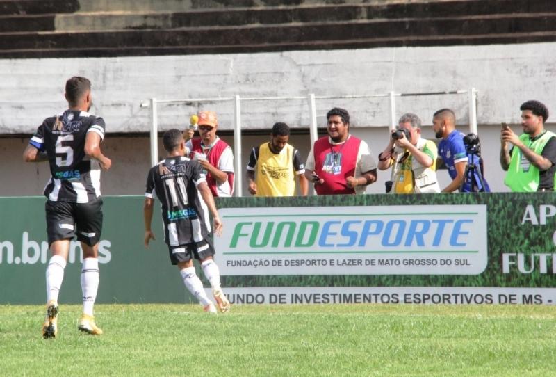 Keverson comemora um dos dois gols que marcou na estreia do Aquidauanense no Estadual