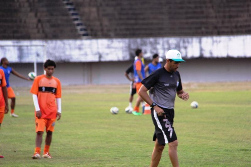 Treinador Chiquinho Lima durante os treinamentos aos jogadores do Operário