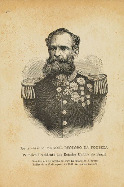Manoel Deodoro da Fonseca, primeiro Presidente dos Estados Unidos do Brazil. Nascido a 5 de agosto de 1827 na cidade de Alagoas, Falecido a 23 de agosto de 1892 no Rio de Janeiro