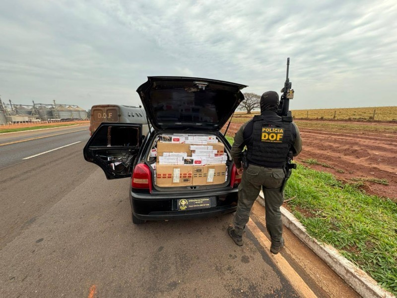 Um Volkswagen Gol carregado com mil pacotes de cigarros contrabandeados do Paraguai foi apreendido nesta quinta-feira (2) pelo Departamento de Operações de Fronteira (DOF), em Itaquiraí.