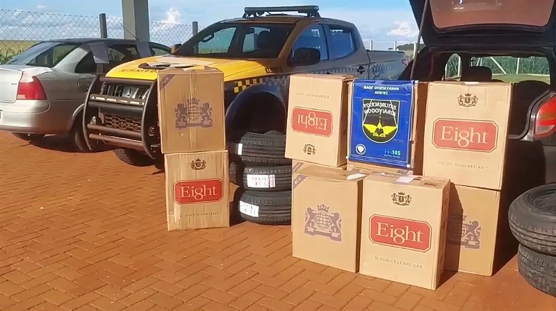 Já a segunda ocorrência foi registrada no km 01 da MS-166, quando um veículo GM/Celta foi abordado. No interior do carro, os policiais localizaram pacotes de cigarros e pneus de origem estrangeira, também sem documentação fiscal.