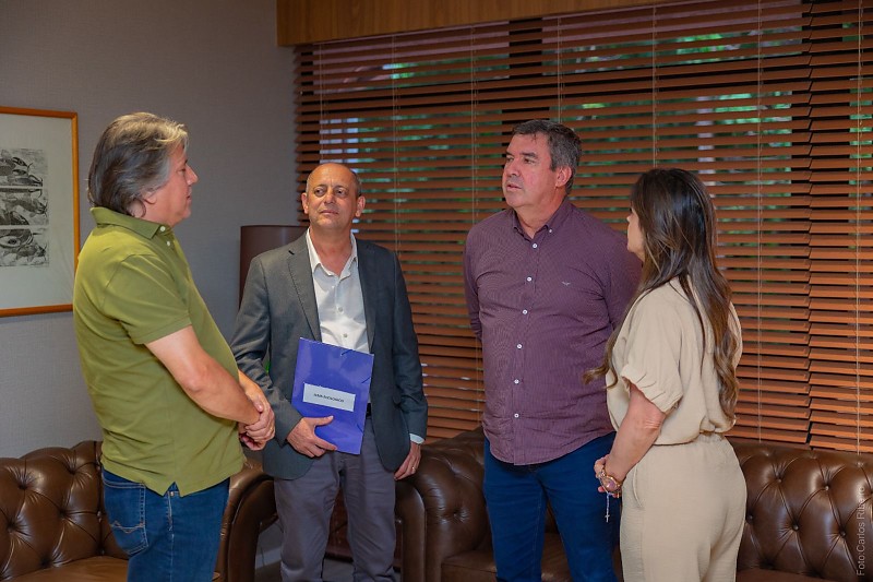 O deputado estadual Caravina participou nesta segunda-feira (1°) de uma reunião no Gabinete do Governador Eduardo Riedel com o prefeito de Taquarussu, Clovis do Banco, para tratar de novas demandas e projetos prioritários para o município. O encontro reforçou o compromisso do parlamentar com o desenvolvimento regional.