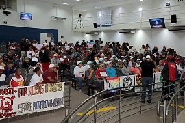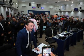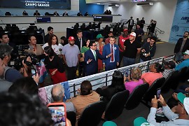 A sessão desta terça-feira (28), na Câmara Municipal de Campo Grande, foi sob protestos de manifestantes lotar o plenário em protestos contra a lei que proíbe trans em banheiros femininos. Uma equipe da Guarda Civil Municipal, a Romu, foi acionada para realizar a segurança dos parlamentares na Casa de Leis.