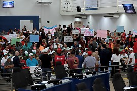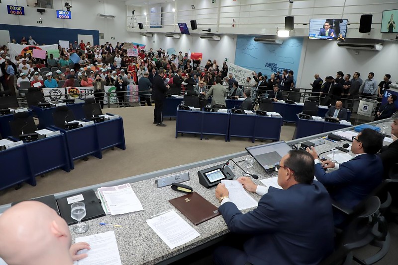 Logo no início da sessão, sob muitas vaias, o presidente da Câmara, Epaminondas Neto, o Papy (PSDB), tentou acalmar os ânimos, mas os manifestantes intensificaram os protestos, gerando desconforto entre os parlamentares.