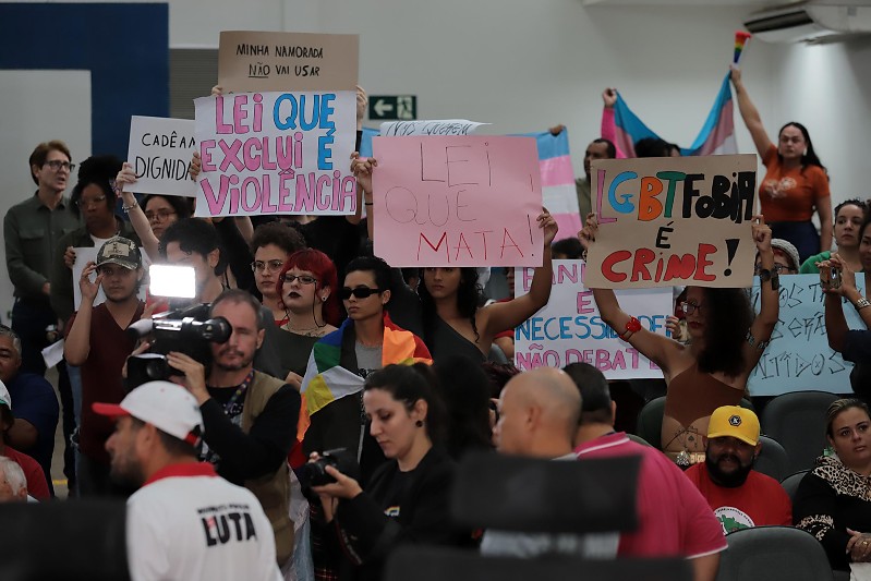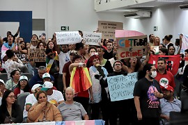 Manifestantes lotaram o plenário em manifestação ao projeto que proíbe pessoas trans de utilizarem banheiros femininos