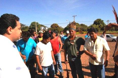 Neste instante, os indígenas liderados pelo cacique Rodrigues, Japão e o secretário de Saúde Carlos Leite estão na sede do Programa de Erradicação do trabalho Infantil (Peti).
